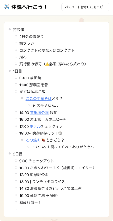 kokoikoは、パスコードだけで簡単に共有できる旅程作成ツールです